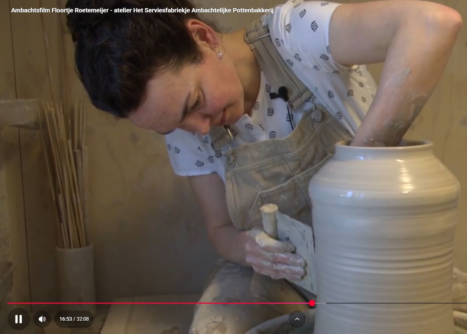 In deze film van 32 minuten zie je met mooie lange shots het hele werkproces: van het klei prepareren, het draaien, afwerken tot glazuren en bakken.